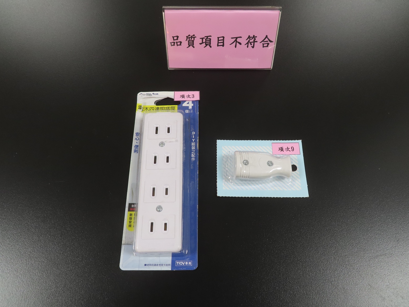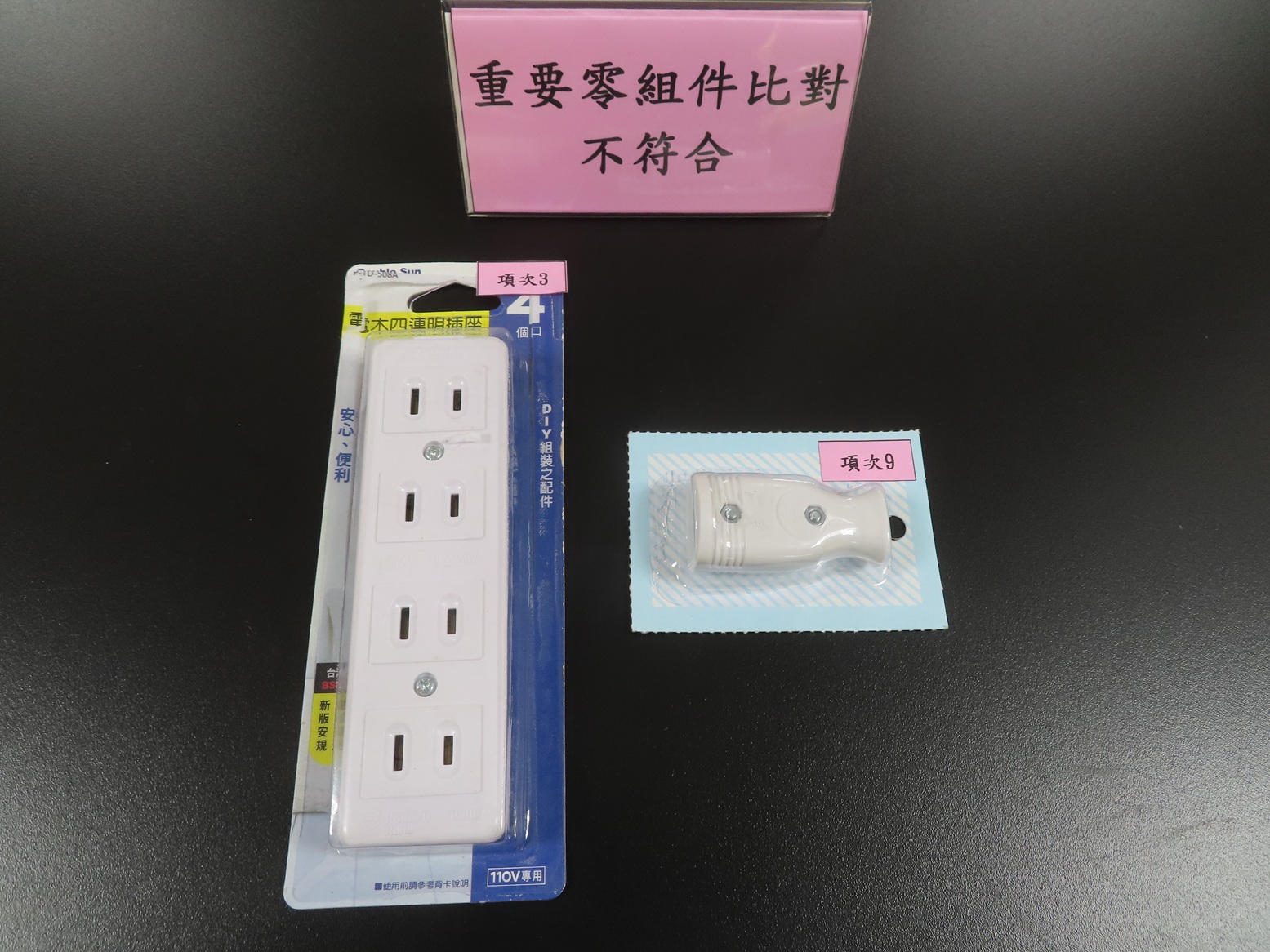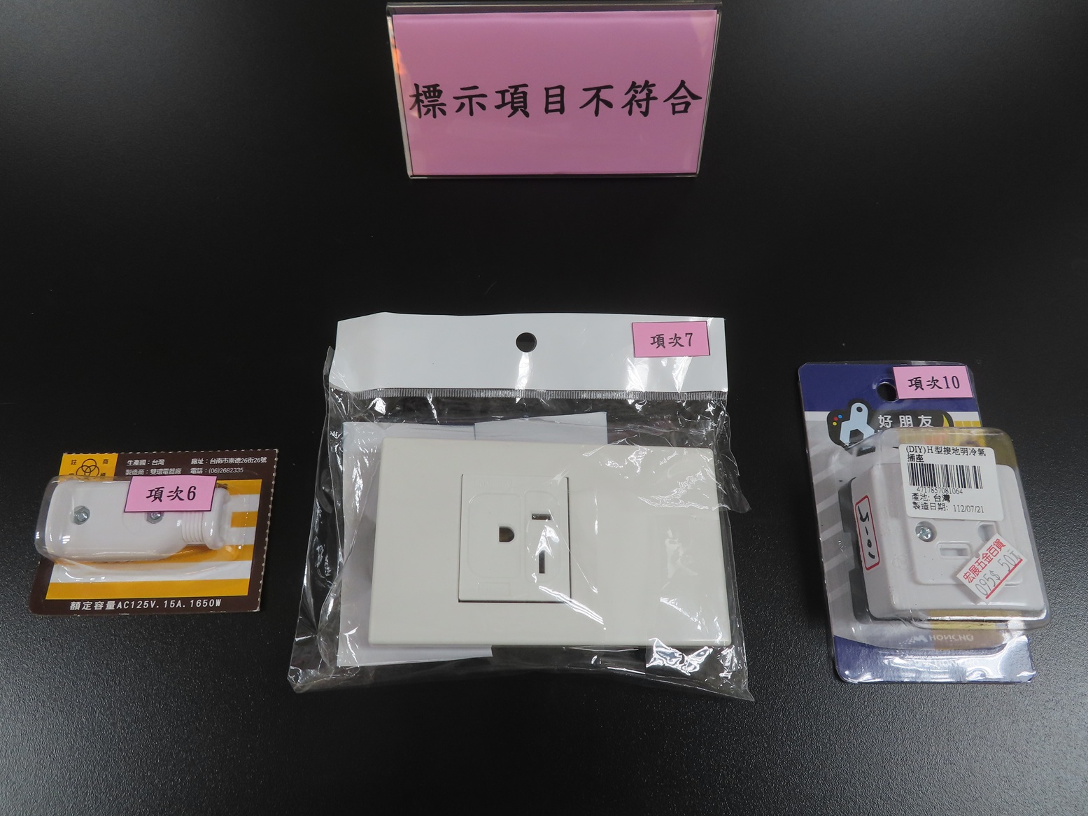 「配線用插座」是住家經常用來提供給電器產品使用電源的商品。為確保市售「配線用插座」安全性,經濟部標準檢驗局114年3月於各大賣場及五金百貨等販售通路,隨機購買10件不同廠牌型號之「配線用插座」商品進行檢測,檢測結果為「品質項目」計2件不符合規定,「重要零組件比對」計2件不符合規定,「標示查核」計3件不符合規定。